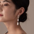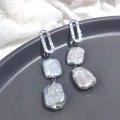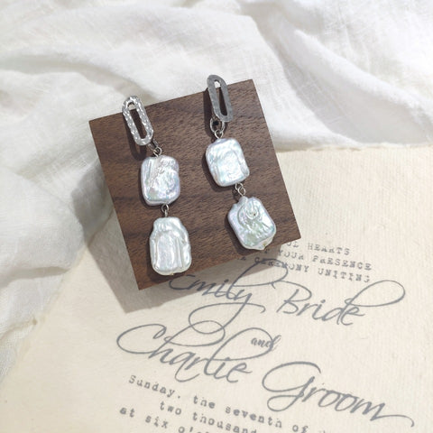 Double baroque pearl earrings, o-shaped hammered pattern.